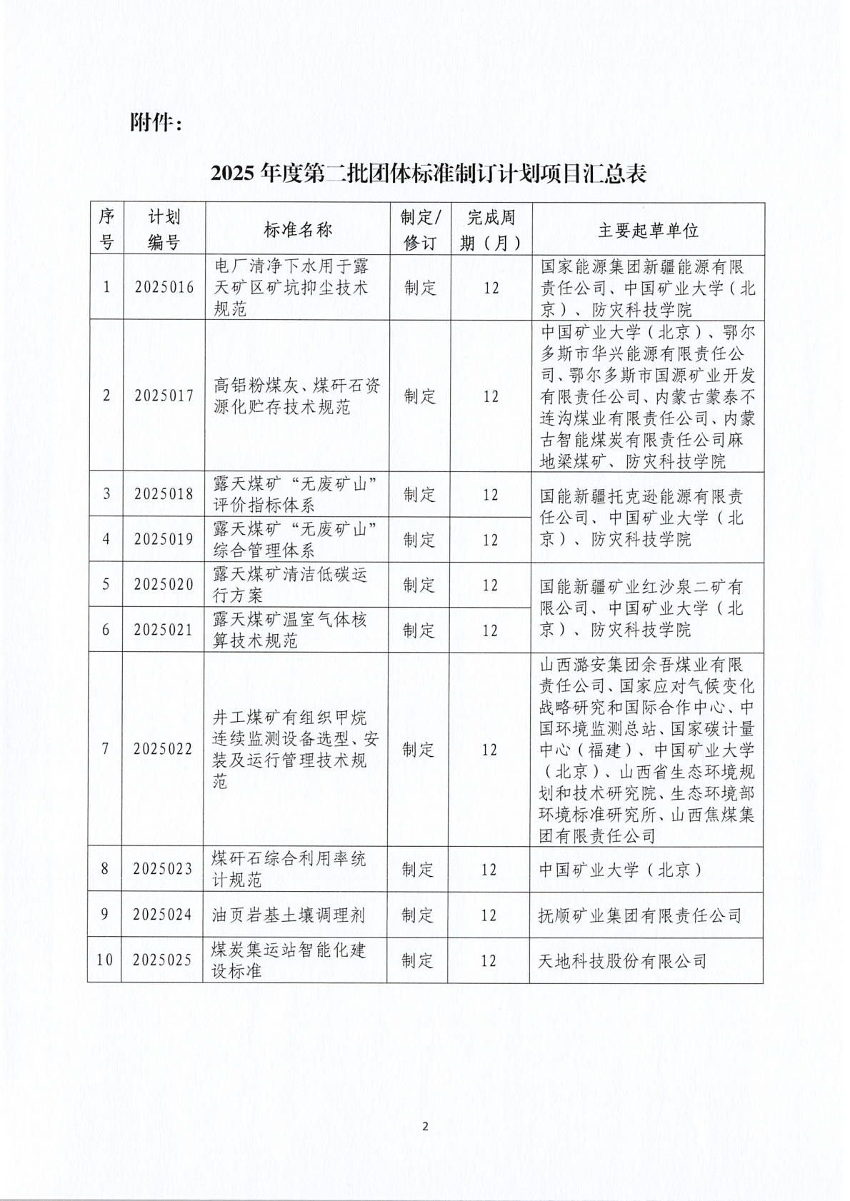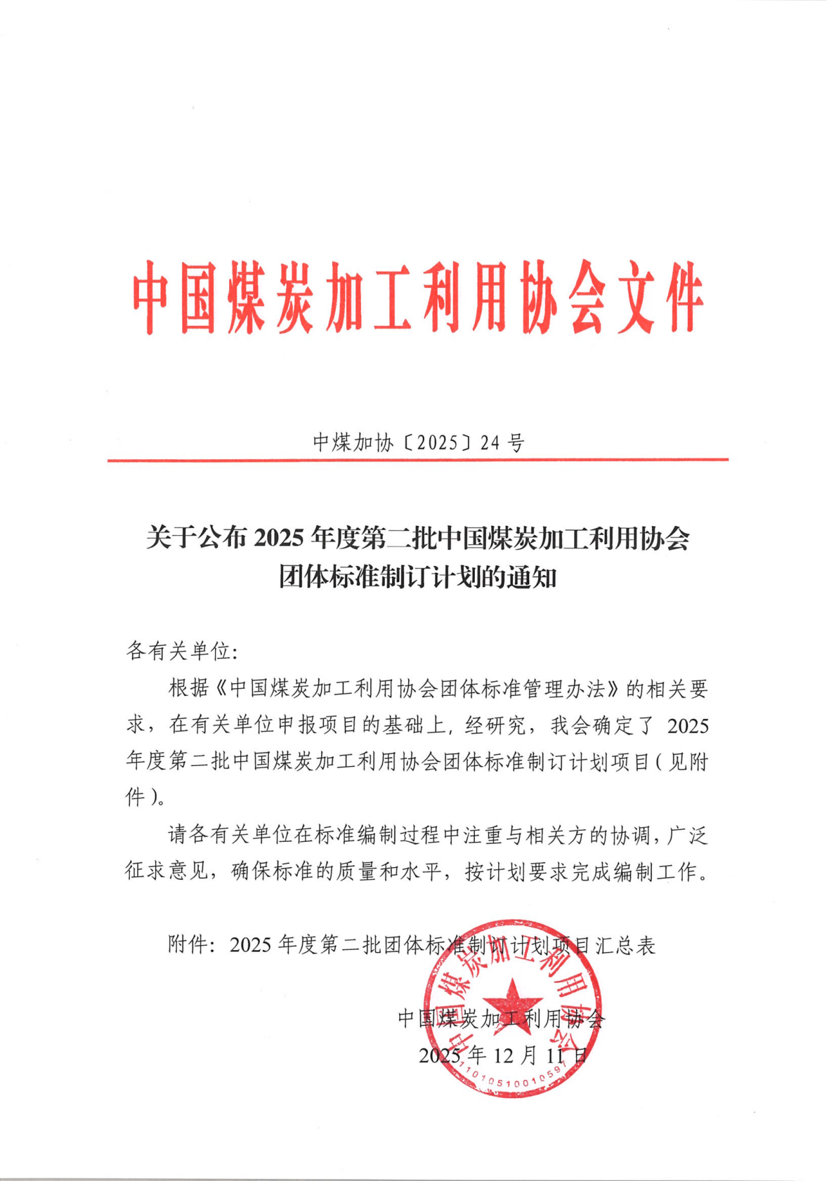 关于公布2025年度第二批中国煤炭加工利用协会团体标准制修订计划的通知