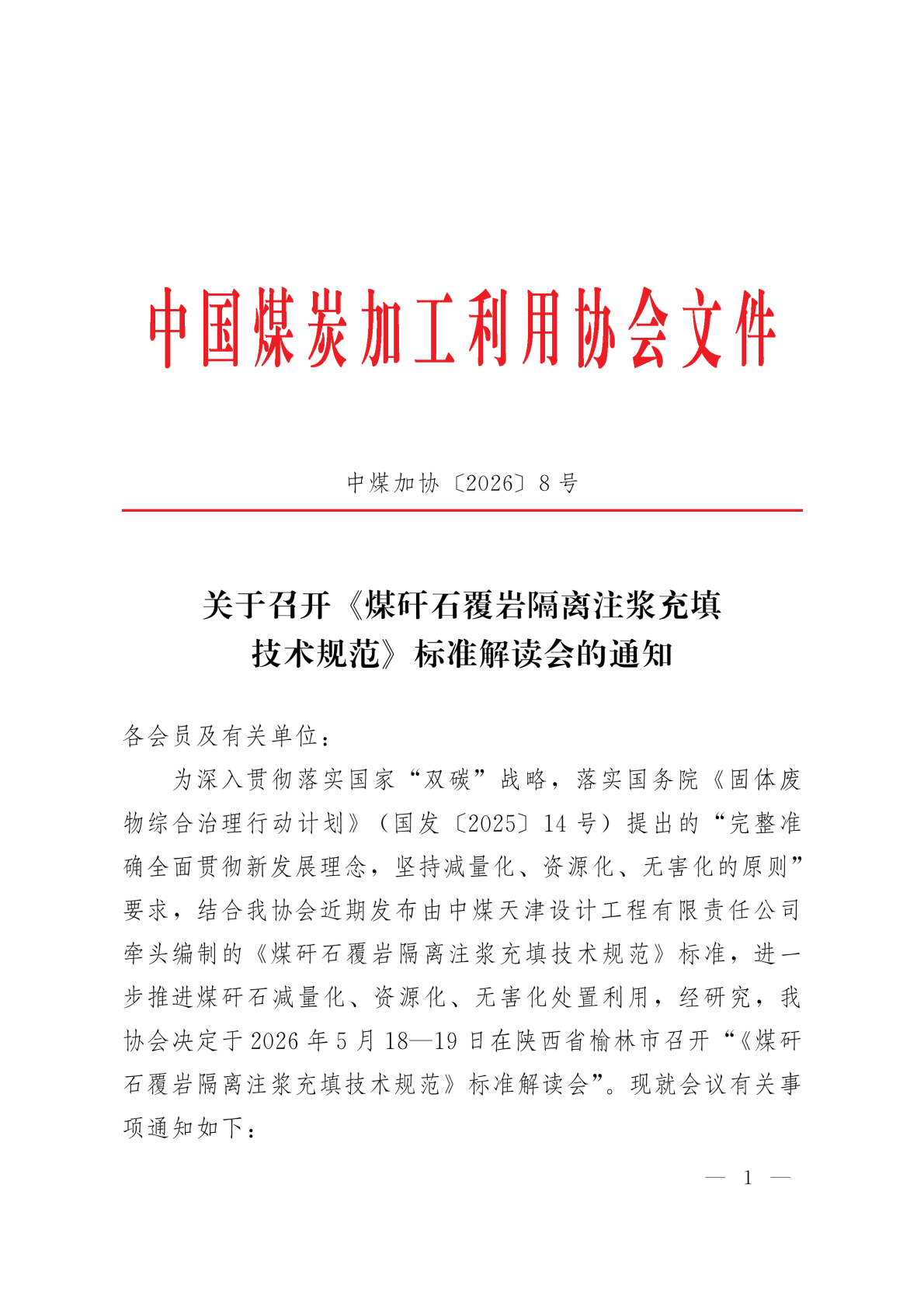 关于召开《煤矸石覆岩隔离注浆充填技术规范》标准解读会的通知