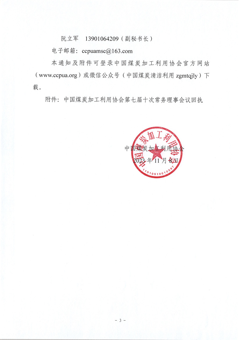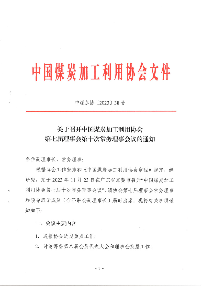 关于召开中国煤炭加工利用协会第七届理事会第十次常务理事会议的通知